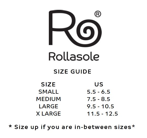 Whether you’re a small, medium or a large, each Rollasole is lovingly designed to fit snug on every foot. All deluxe styles with a heel will include a free heel pad to customise your perfect fit.