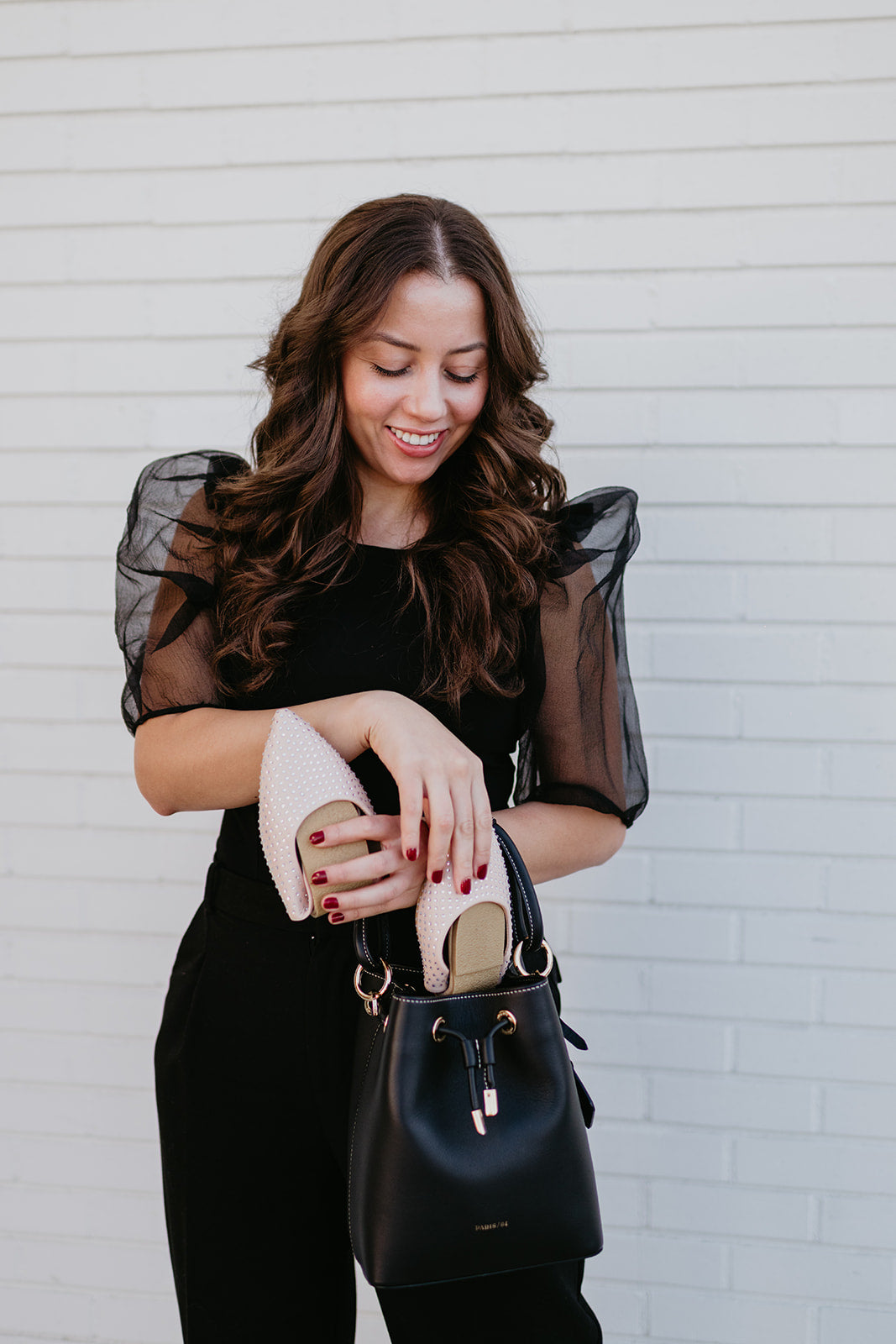 - A compact high heel carry bag to keep your heels in