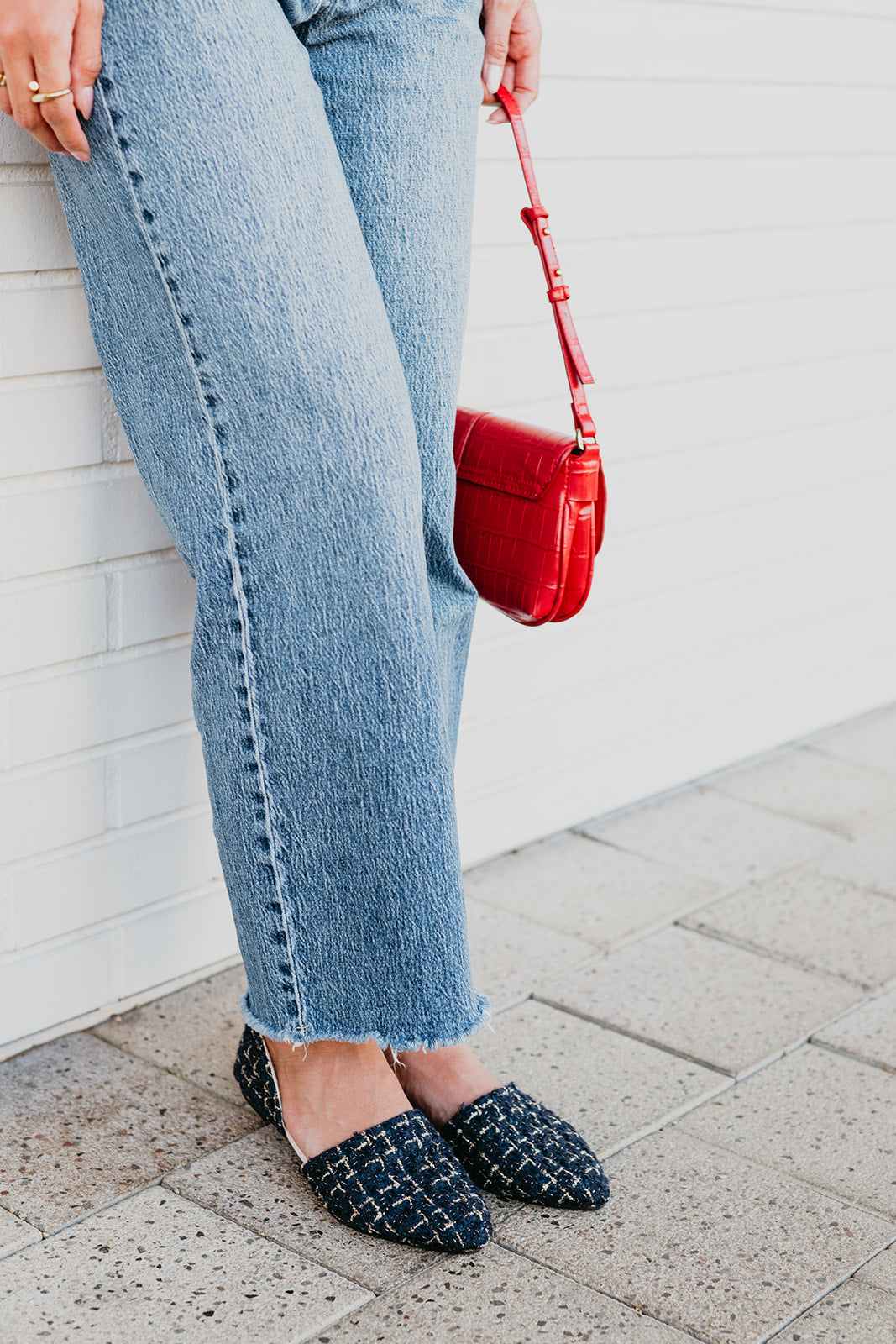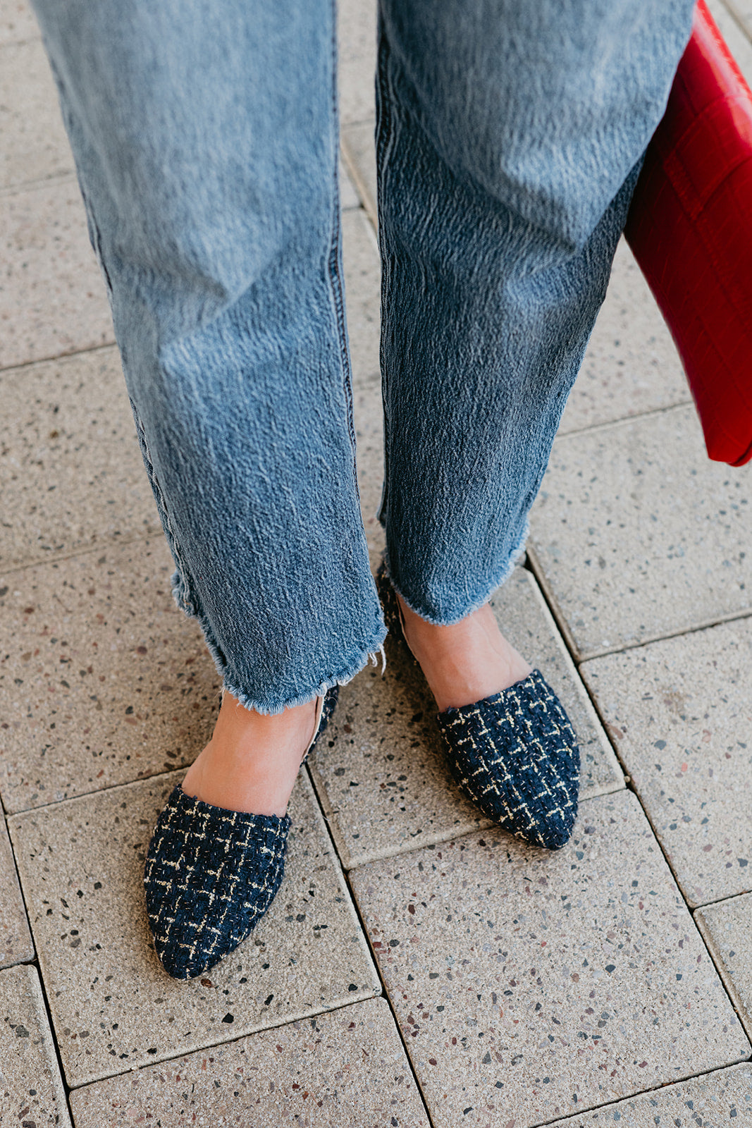 This style effortlessly blends fashion and function, ensuring you stride with confidence and style. The striking royal blue tweed adds a pop of color to any outfit, making it the perfect statement piece for any occasion.