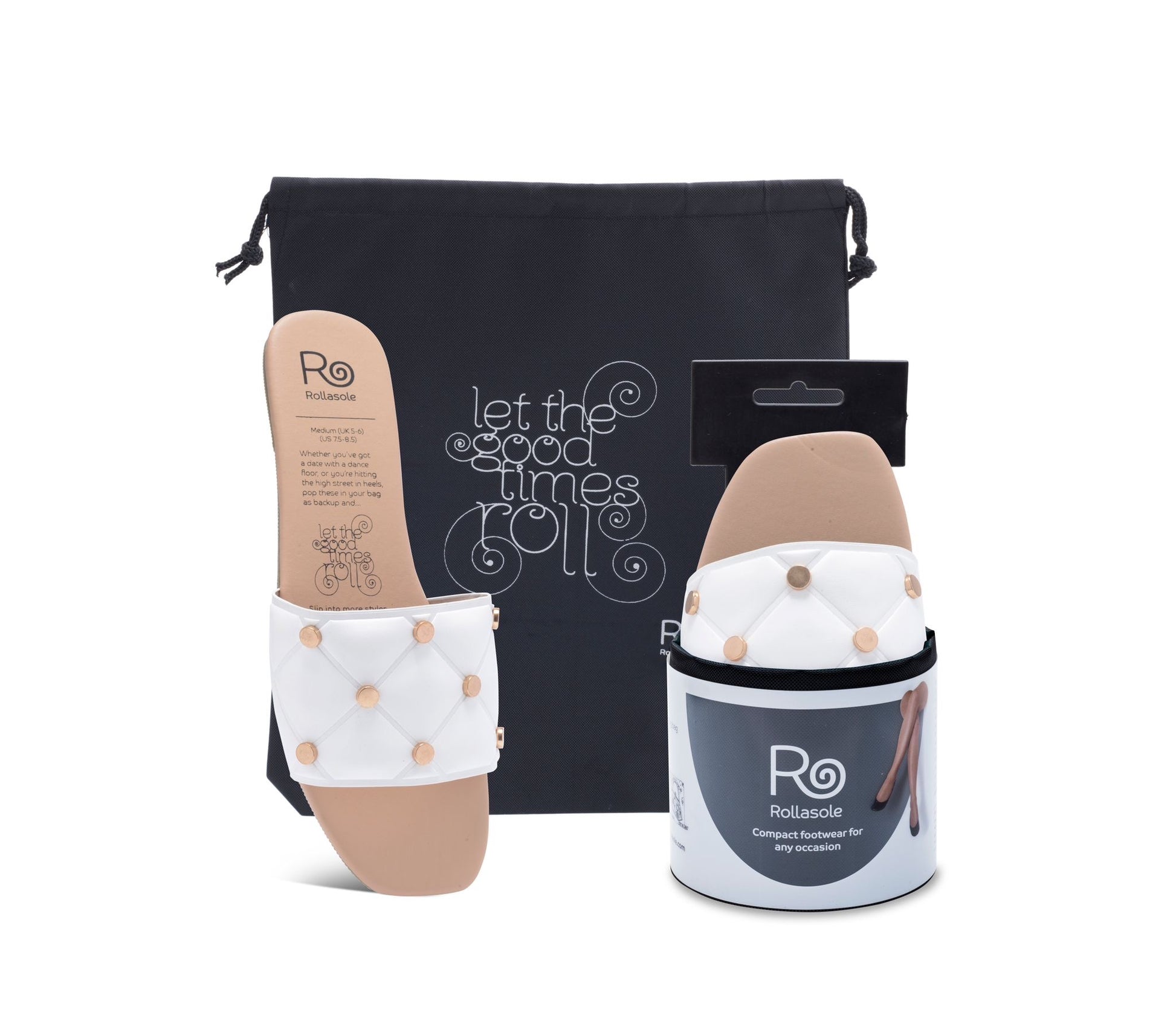 Whether you’re a small, medium or a large, each Rollasole is lovingly designed to fit snug on every foot. All deluxe styles with a heel will include a free heel pad to customise your perfect fit.